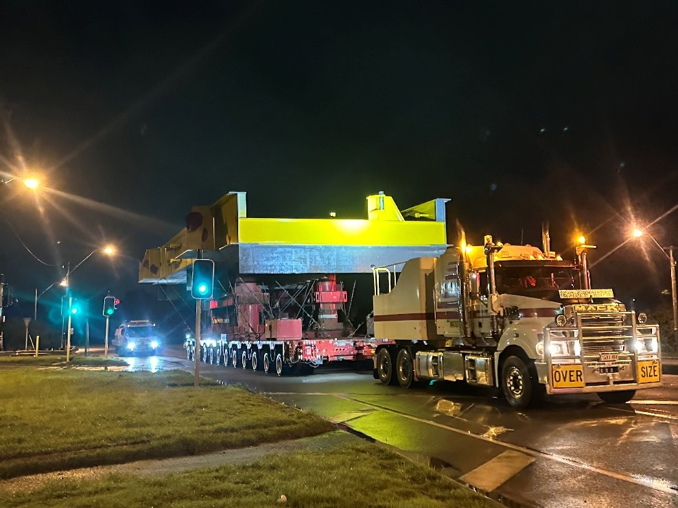 The mudmat was to be installed as part of subsea expansion scope for Chevron’s Gorgon Gas fields. Once loaded, the mudmat and trailer combination transport envelope was 22.3m (l) x 11m (w) x 6.945 m (h) with overall combination length of 38.99 m. This massive envelope required special transport management planning including night transit which was escorted through the busy industrial area to the port.