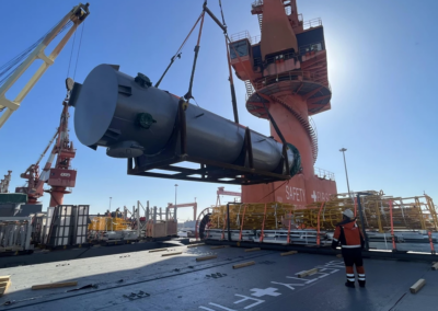 Westlink was engaged to provide full end-to-end logistics management of structural steel, platework and preassemblies from Tianjin, China to Port Hedland, Western Australia. All delivered steel was used in the construction of processing plant for a Greenfields lithium refinery at the Kathleen Valley Project site, between Wiluna and Leinster in Western Australia, for Liontown Resources.