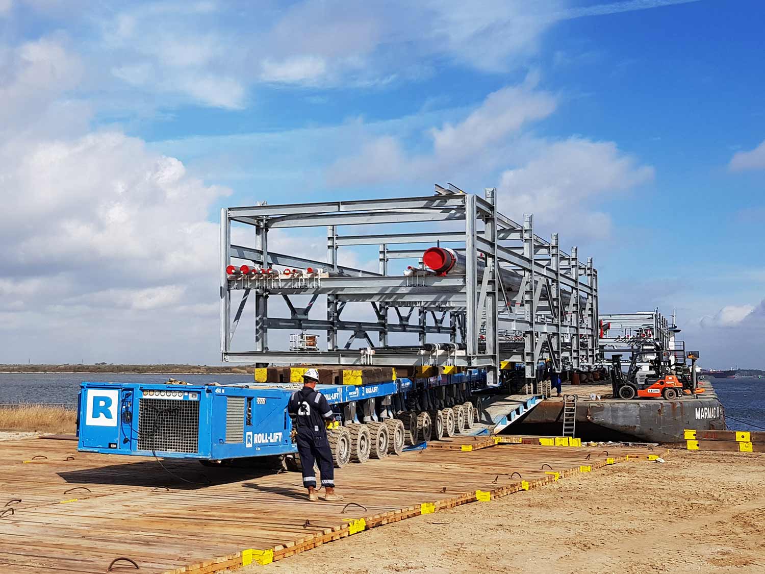 • SPMT, tug and barge RORO operations – Industrial Terminals, Houston to Spilman Island laydown