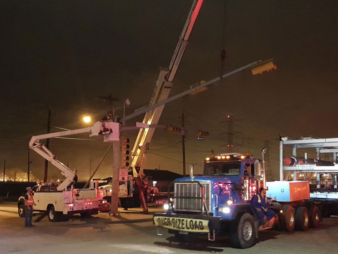 • Traffic control in Houston – police escorts, temporary removal of traffic lights, street signs and lifting of overhead lines