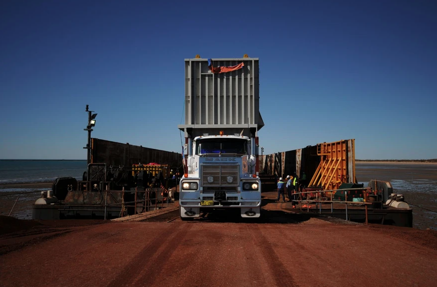 - Two kilometres to site via heavy haulage roll-off from barge with zero disruption to mining operations