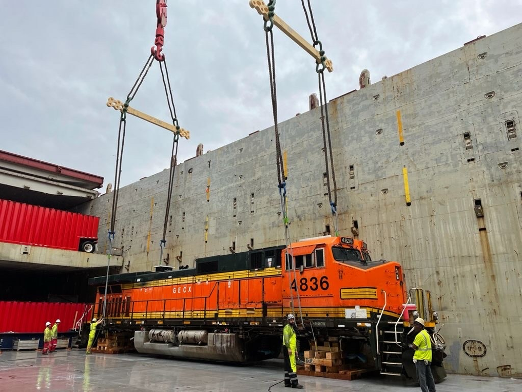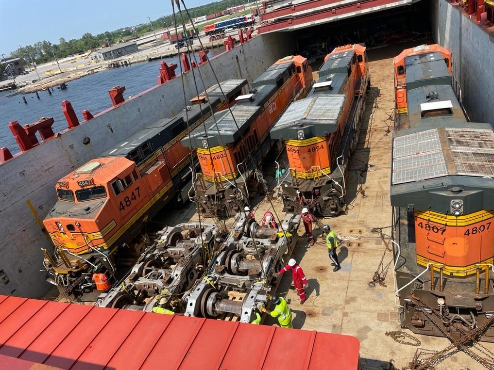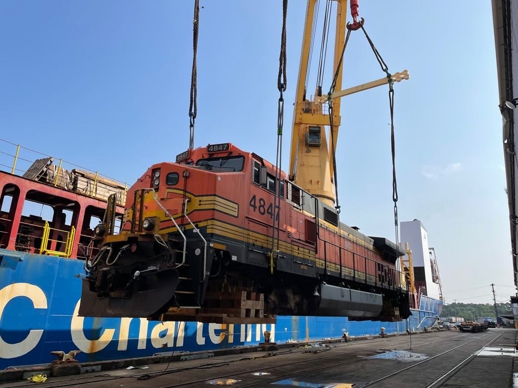 Rail pull – locomotive factory, Iowa to Port of Norfolk, USA