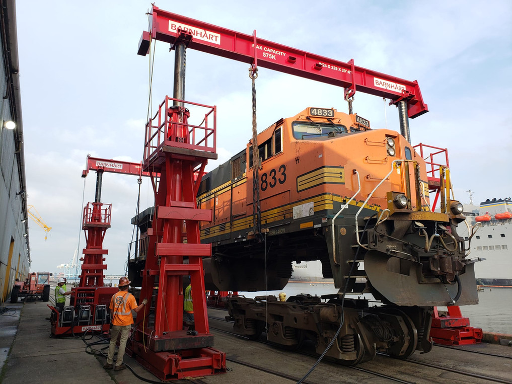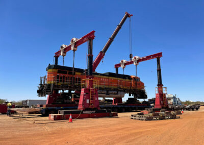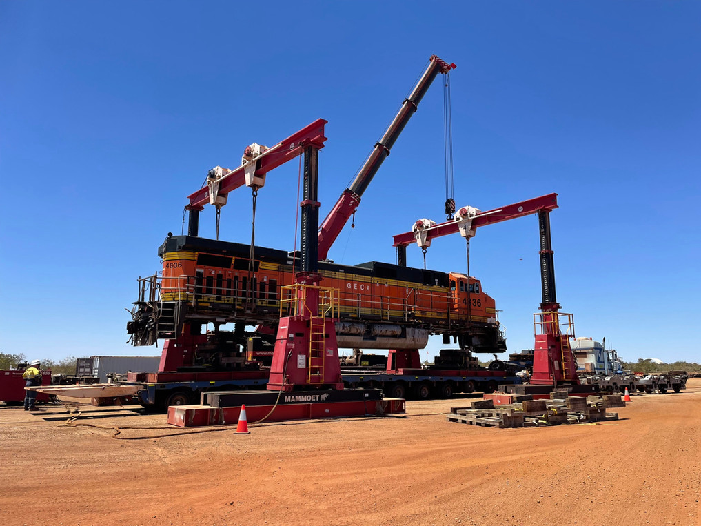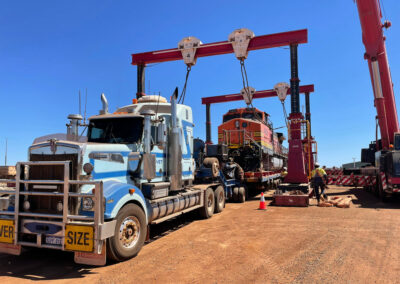 Craneage – gantry lifting and landing of locomotives from heavy haul trailers to rail head