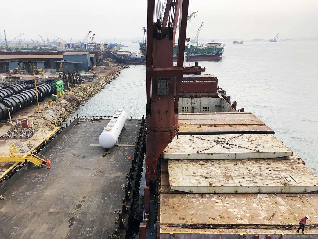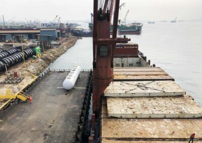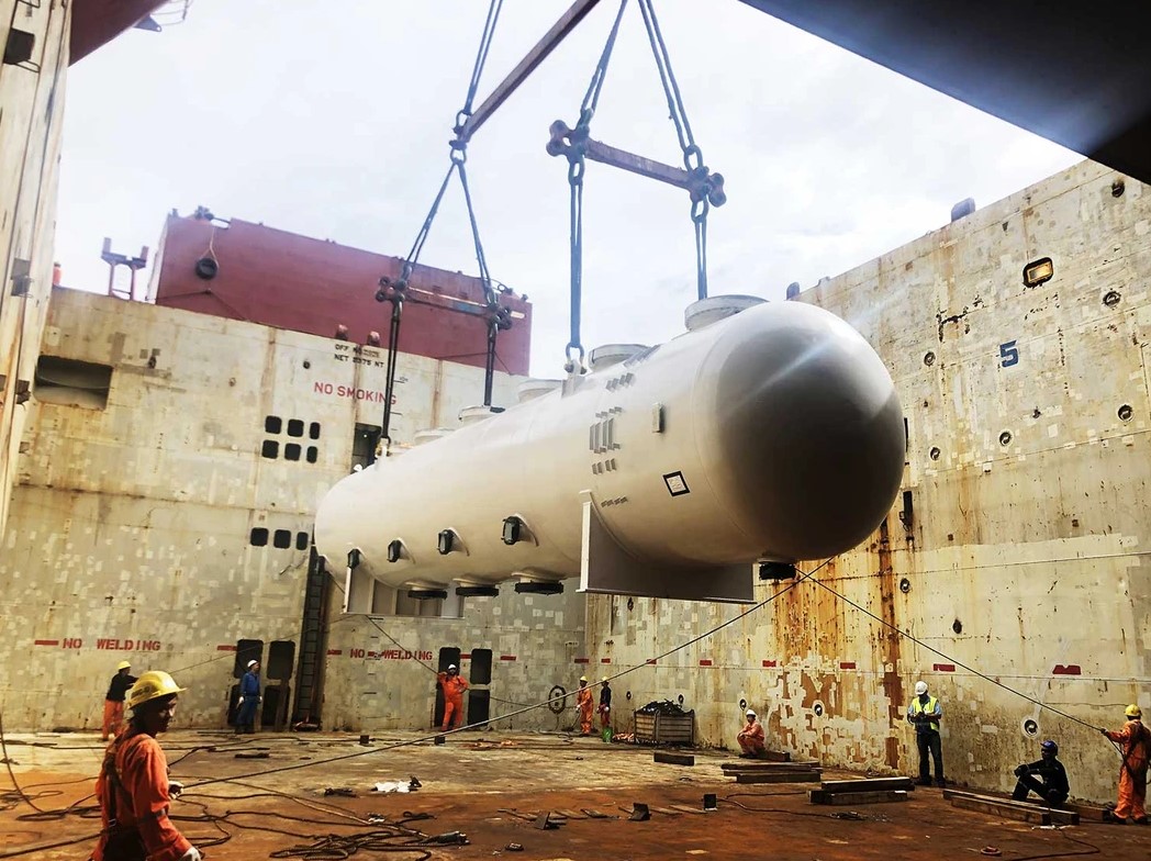 Westlink was engaged to provide a multimodal logistics solution for a heavy weak acid reactor vessel that contained sensitive brick lining. The vessel was to be installed at silicone production plant upgrade in Rayong, Thailand and required transport from the fabrication yard in Batam, Indonesia.