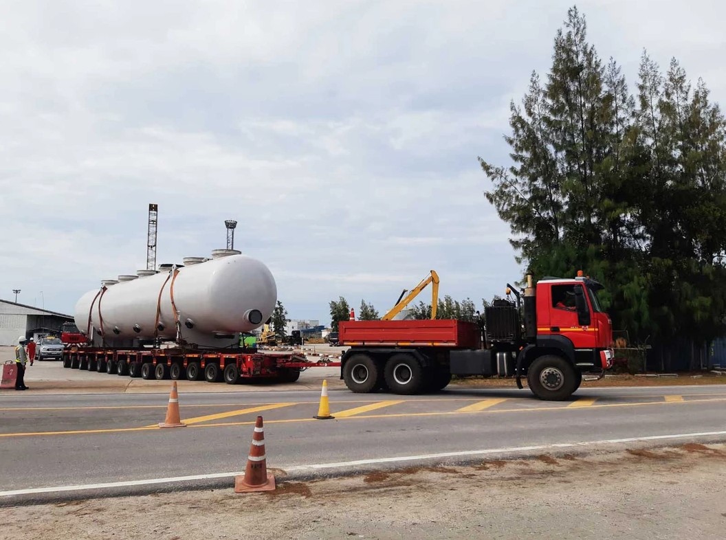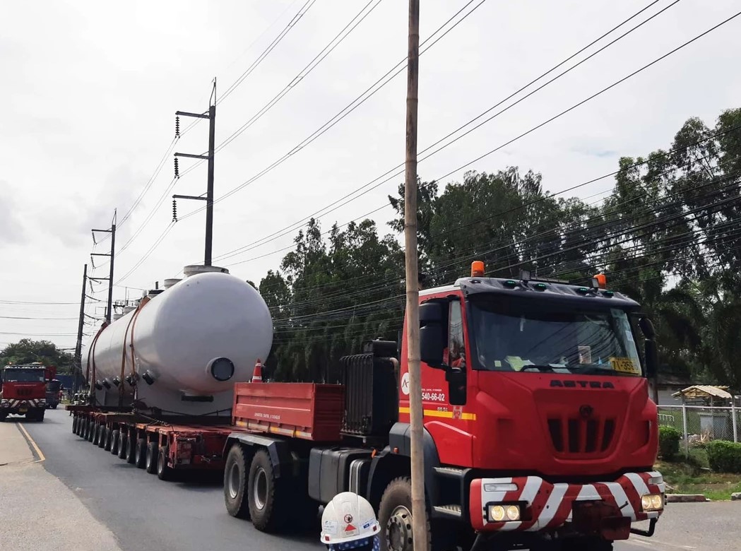 Heavy haulage through built up Rayong industrial area from port to delivery point