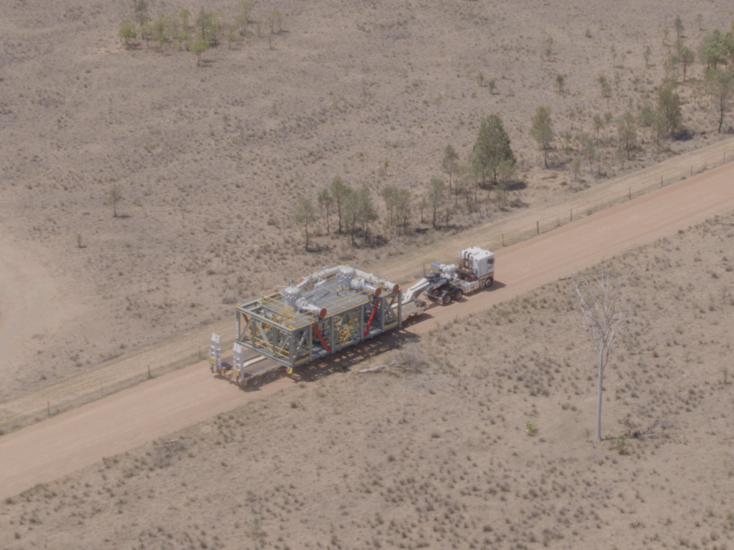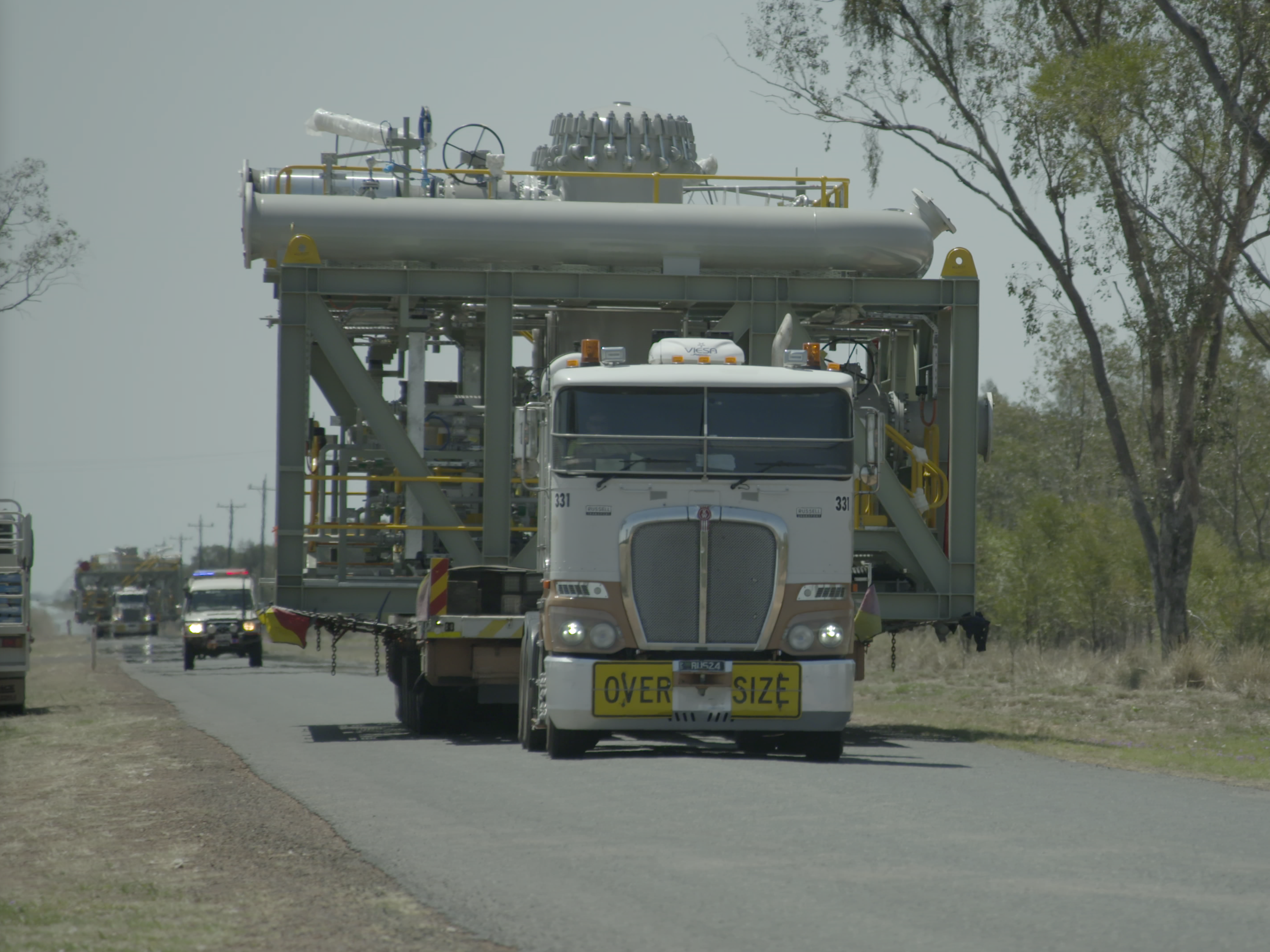 Oversized transport of modules from Brisbane to project site 300 kilometres away in Chinchilla